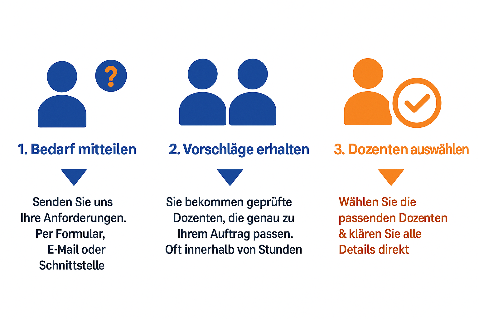Wir schlagen Ihnen passende Dozierende vor – oft innerhalb weniger Stunden.